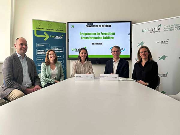 De l'autre côté, UniLaSalle forme depuis plus de 170 ans des ingénieurs agronomes et agroalimentaires sur son campus de Beauvais. L'école dispose depuis décembre 2024 d'un atelier lait opérationnel, intégré à un environnement pédagogique qui mêle ferme en activité, laboratoires et plateformes de recherche. Un ancrage dans les filières du vivant qui fait d'UniLaSalle un interlocuteur naturel pour Lactalis.